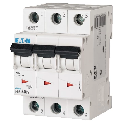 Wyłącznik nadprądowy 6kA PL6-B40/3 o numerze katalogowym 286593 w kategorii Wyłączniki nadprądowe 6kA, Wyłączniki nadprądowe. Produkt wyprodukowany przez markę EATON, seria PL6.