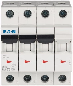 Wyłącznik nadprądowy 6kA PL6-C6/3N o numerze katalogowym 106907 w kategorii Wyłączniki nadprądowe 6kA, Wyłączniki nadprądowe. Produkt wyprodukowany przez markę EATON, seria PL6.