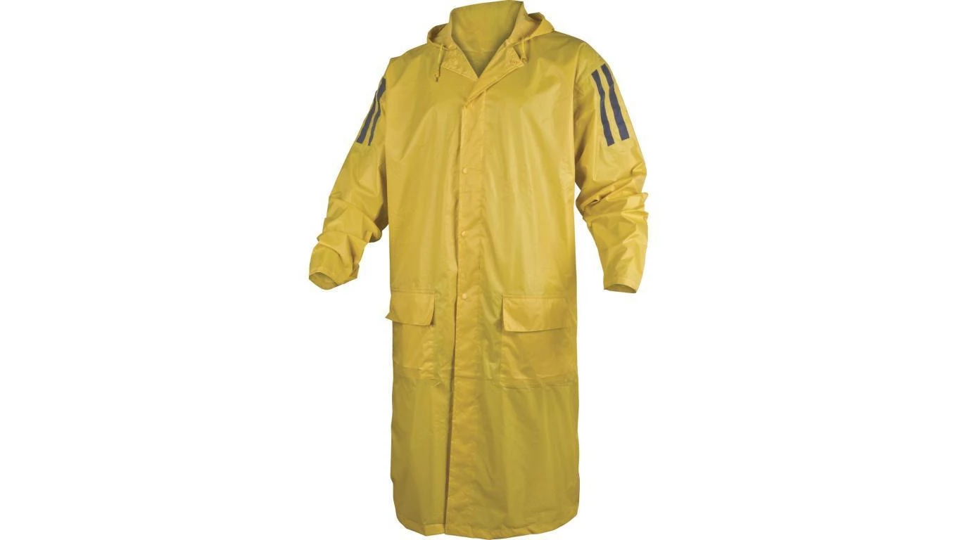 Płaszcz przeciwdeszczowy z poliestru powlekanego PVC żółty M o numerze katalogowym MA400JATM w kategorii Bluzy, kurtki i spodnie robocze, Odzież robocza. Produkt wyprodukowany przez markę DELTA PLUS, seria MA400.