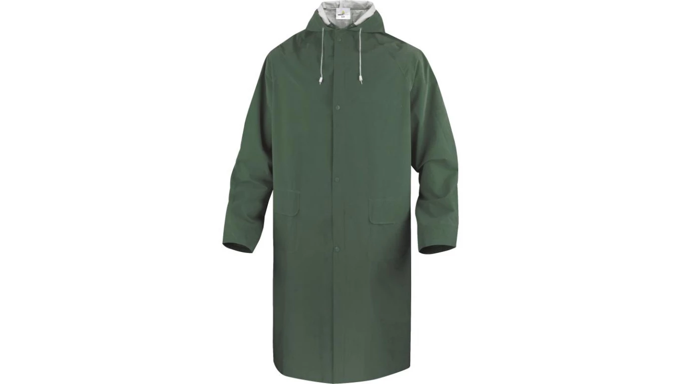 Płaszcz przeciwdeszczowy z poliestru obustronnie powlekanego PVC zielony XXL o numerze katalogowym MA305VEXX2 w kategorii Bluzy, kurtki i spodnie robocze, Odzież robocza. Produkt wyprodukowany przez markę DELTA PLUS, seria 305.