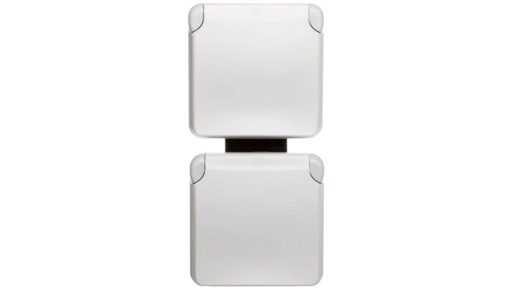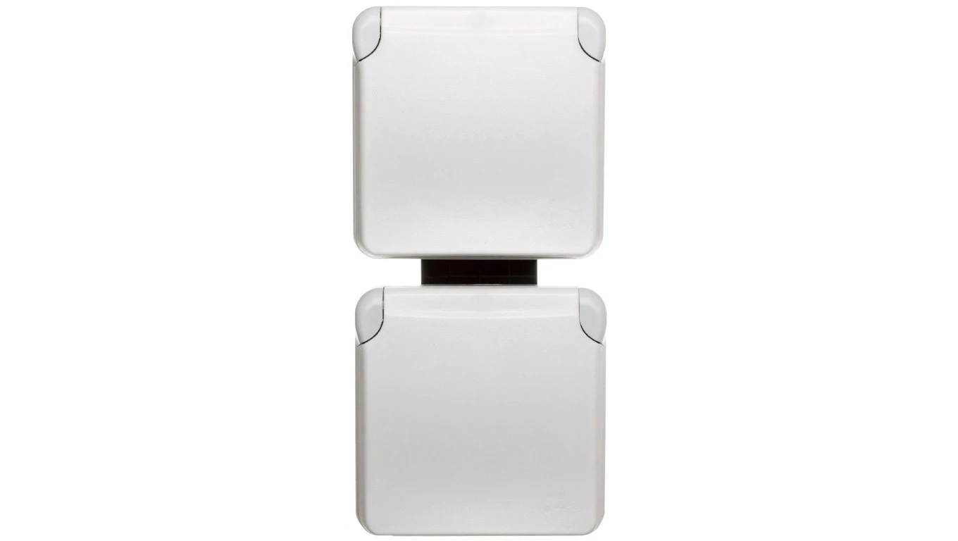 PLEXO55 MECHANIZM BIAŁY/ ECRU GNIAZDO 2X Z/U Z KLAPKĄ IP55 IK07 PIONOWE ZACISKI SPRĘŻYNOWE 16A 250V