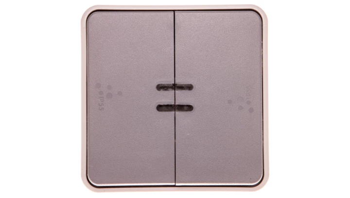 PLEXO55 MECHANIZM SZARY ŁĄCZNIK UNIWERSALNY 2X PODŚWIETLANY IP55 ZACISKI SPRĘŻYNOWE 10AX 250V