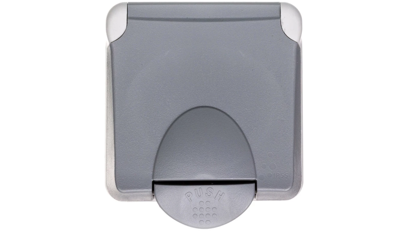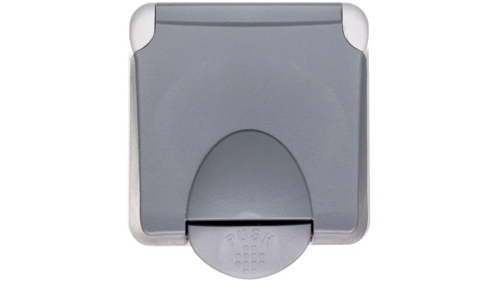 PLEXO55 SZARY GNIAZDO 1X Z/U Z KLAPKĄ Z PRZYCISKIEM IP55 IK07 ZACISKI ŚRUBOWE 16A 250V