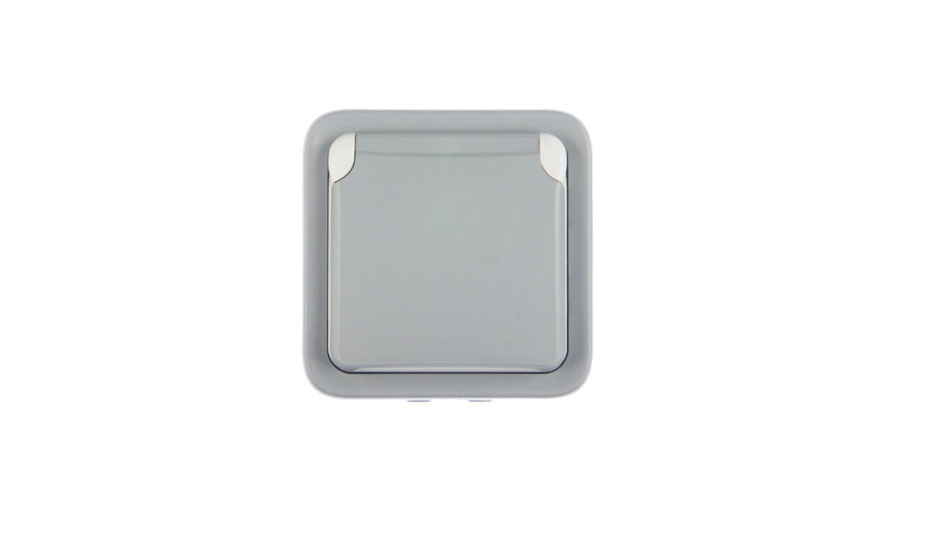 PLEXO55 SZARY GNIAZDO NT 1X Z/U Z KLAPKĄ IP55 IK07 Z PRZESŁONAMI ZACISKI SPRĘŻYNOWE 16A 250V