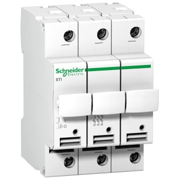 Podstawa bezpiecznikowa STI-8,5x31,5-3 3-biegunowa o numerze katalogowym A9N15655 w kategorii Akcesoria bezpiecznikowe, Rozłączniki, podstawy bezpiecznikowe. Produkt wyprodukowany przez markę SCHNEIDER ELECTRIC, seria ACTI 9.