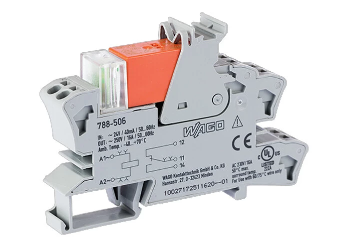 przekaźnik; znamionowe napięcie wejściowe 24 V AC; 1 zestyk przełączny; maksymalny prąd długotrwały 16 A; sygnalizacja statusu czerwony; szerokość 15 mm; 2,50 mm²; szary
