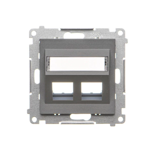 Pokrywa gniazd teleinformatycznych na Keystone skośna podwójna z polem opisowym (moduł): Grafitowy mat, SIMON55 o numerze katalogowym   TKP2S.01/116 w kategorii Ramki, klawisze, plakietki>Plakietki. Produkt wyprodukowany przez markę KONTAKT-SIMON, seria SIMON 55.