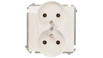 Simon 54 Gniazdo podwójne z/u 16A IP20 z przesłoną torów białe DGZ2MZ.01/11