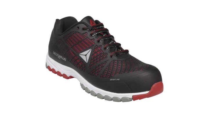 Półbuty z wtryskiwanego poliuretanu i siatki typu mesh, podeszwa z phylonu i kauczuku, podnosek i wkładka kompozytowe czarno-czerwony 43 o numerze katalogowym DSPORSPNR43 w kategorii Obuwie robocze, Ochrona nóg. Produkt wyprodukowany przez markę DELTA PLUS.