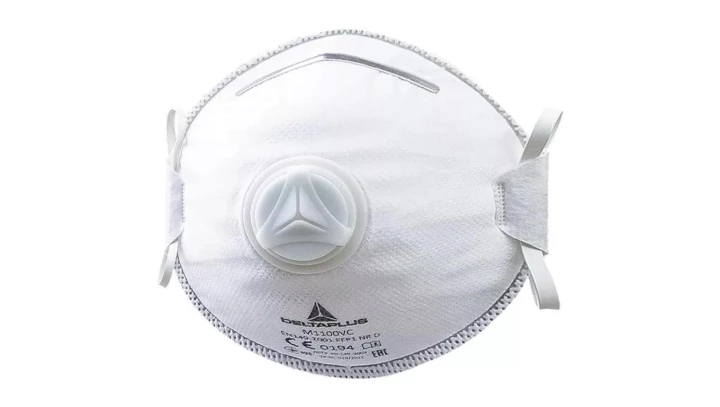 Opakowanie 10 półmasek z filtrem ffp1, z zaworem, z testem dolomitowym biały regulowany o numerze katalogowym M1100VC w kategorii Maski wielokrotnego użytku, Ochrona głowy. Produkt wyprodukowany przez markę DELTA PLUS.