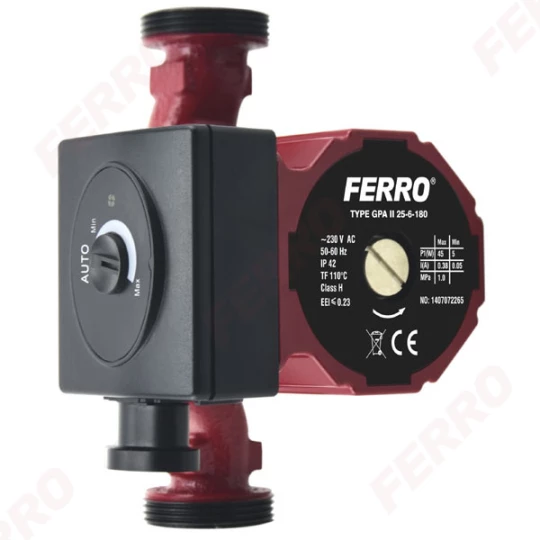 Pompa elektroniczna GPA II 180 25-6 o numerze katalogowym 0602W w kategorii Pompy CO z przyłączem gwintowanym, Pompy obiegowe do C.O. i klimatyzacji. Produkt wyprodukowany przez markę FERRO, seria GPA II.