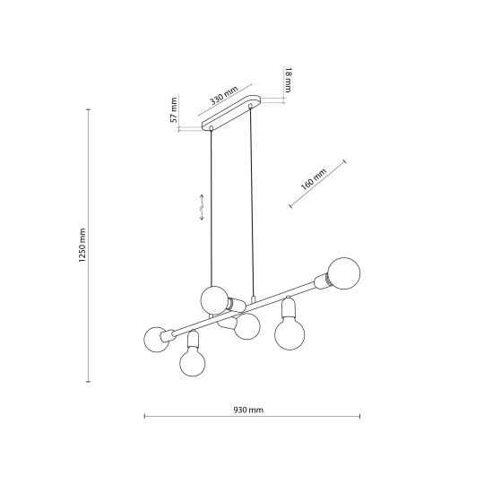 PORTO CZARNY OPRAWA WISZĄCA 6 PŁ 6 E_27 - LED MAX 15W METAL TWORZYWO SZKŁO