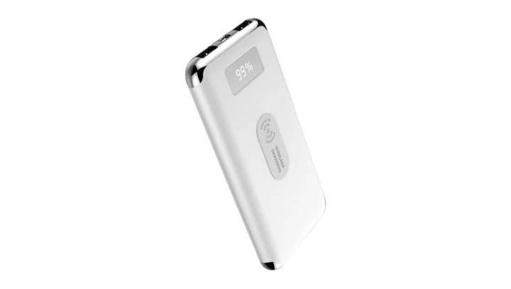 POWER BANK Z WYŚWIETLACZEM LED I ŁADOWANIEM INDUKCYJNYM / 3.7V, 10000MAH/37WH / 5V / BIAŁY