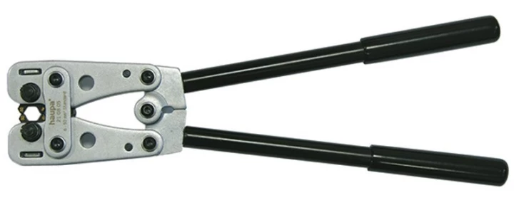 Praska 6-50mm do końcówek i złączek rurowych z wbudowaną matrycą obrotową. zacisk sześciokątny o numerze katalogowym 210805 w kategorii Praski ręczne, Praski i kleszcze. Produkt wyprodukowany przez markę HAUPA.