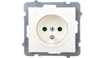 Simon 54 Gniazdo pojedyncze SCHUKO z/u 16A IP20 z przesłoną torów, szybkozłącza, białe DGSz1CZ.01/11