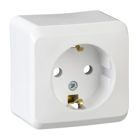 Gniazdo natynkowe pojedyncze z uziemieniem Schuko, biały PRIMA o numerze katalogowym WDE001080 w kategorii Gniazda natynkowe, Gniazda instalacyjne. Produkt wyprodukowany przez markę SCHNEIDER ELECTRIC, seria PRIMA.