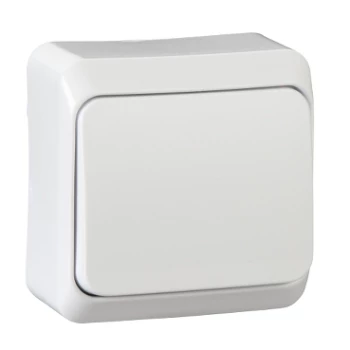 Łącznik natynkowy jednobiegunowy, biały PRIMA o numerze katalogowym WDE001010 w kategorii Łączniki natynkowe jednobiegunowe, Łączniki jednobiegunowe. Produkt wyprodukowany przez markę SCHNEIDER ELECTRIC, seria PRIMA.