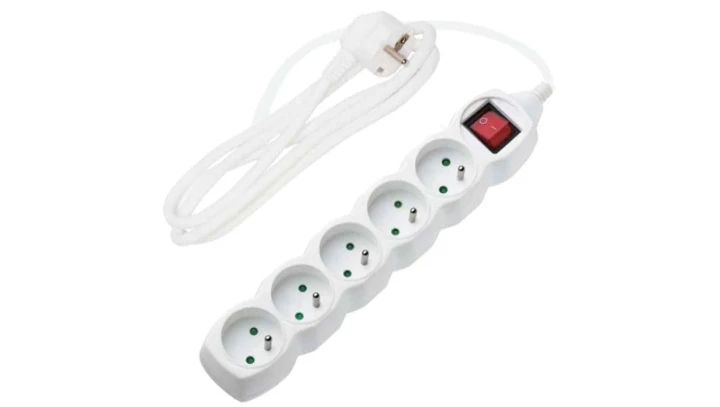 Przedłużacz z wyłącznikiem, 5 gniazd, biały, 5 m o numerze katalogowym PP53 w kategorii Przedłużacze mieszkaniowe, Przedłużacze i rozgałęźniki. Produkt wyprodukowany przez markę DPM.