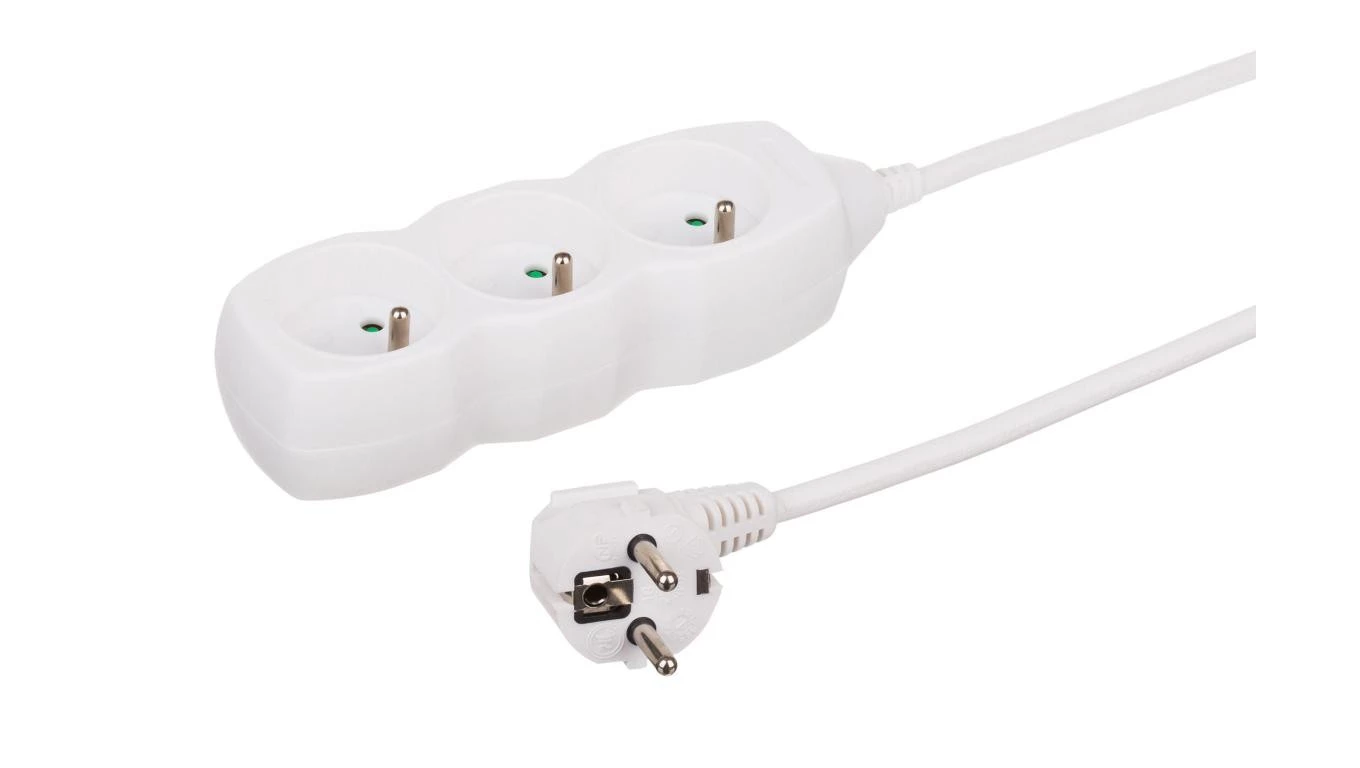 Przedłużacz 3-gniazdowy, 1,5m biały, 3x1,0mm OWY / 34315