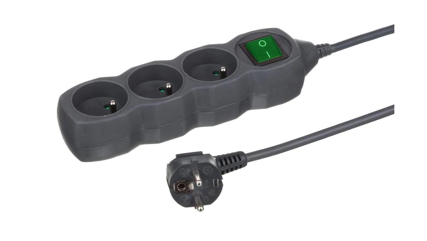 Przedłużacz 3-gniazdowy, 1,5m grafit, łącznik, 3x1,0mm OWY / 24345