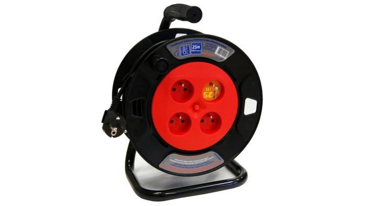 Przedłużacz bębnowy 25m, 4-gniazdowy 3x1,0mm OWY H05VV-F, termik / 24454
