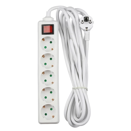 PRZEDŁUŻACZ MIESZKANIOWY Z WYŁĄCZNIKIEM 5 GN. / 3X1.5 G. X 5M / BIAŁY