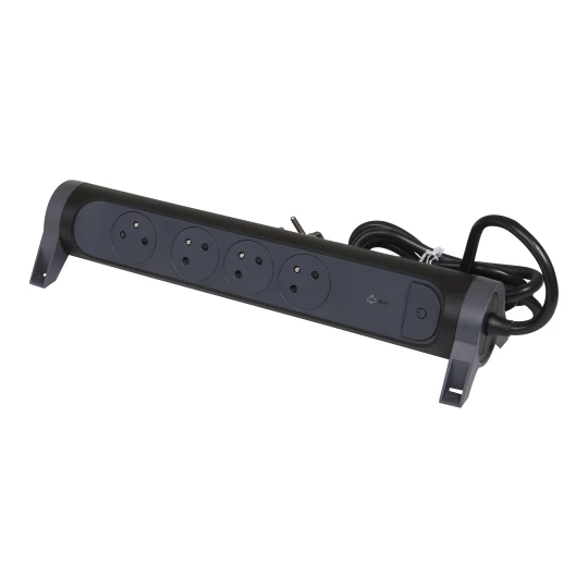 PRZEDŁUŻACZ PREMIUM, OBROTOWY, 4X2P+Z, Z OGRANICZNIKIEM PRZEPIĘĆ, Z PRZEWODEM 1.5 METRA 3X1.0 MM2 - CZARNY/GRAFITOWY
