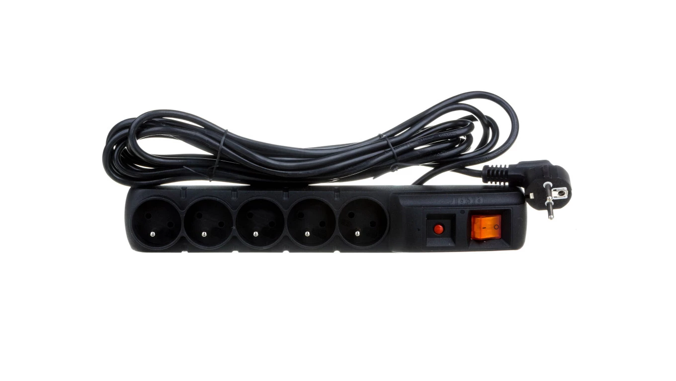 Przedłużacz przeciwprzepięciowy 5-gniazd z/u ACAR F5 5m czarny