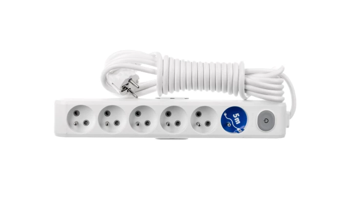 Przedłużacz Przenośny 6-Krotny Z Uziemieniem, Wyłącznikiem I Przesłonami Styków 5m, Kolor Biały / Wlta0665-2wh