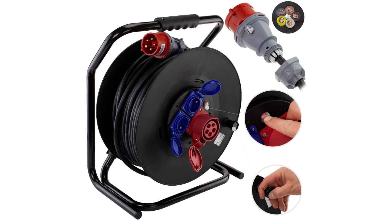 Przedłużacz bębnowy STRONG 30m H05RR-F 5x1,5 IP44 2xGS + 1x16A/5P SPZD1-12-1,5-30G