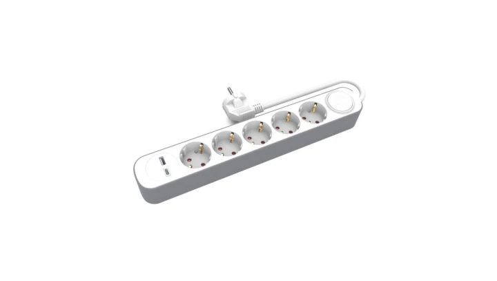 Przedłużacz stały 5x schuko włącznik oraz 1xUSB A 1xUSB C 1,5m PS-570SWS+USBA+USBC/1,5 E W-30009