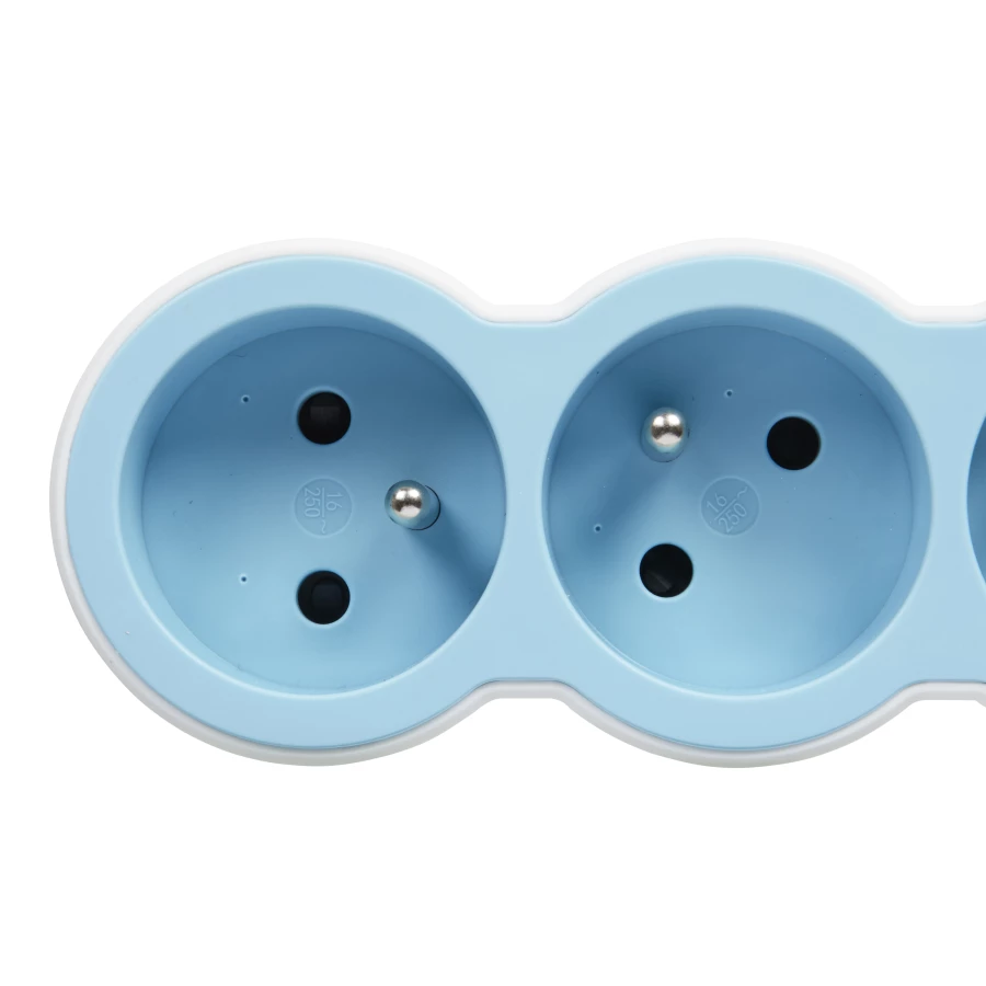 PRZEDŁUŻACZ STANDARD 3X2P+Z, Z PRZEWODEM 1.5 METRA 3X1.0 MM2 - BIAŁY/BŁĘKITNY