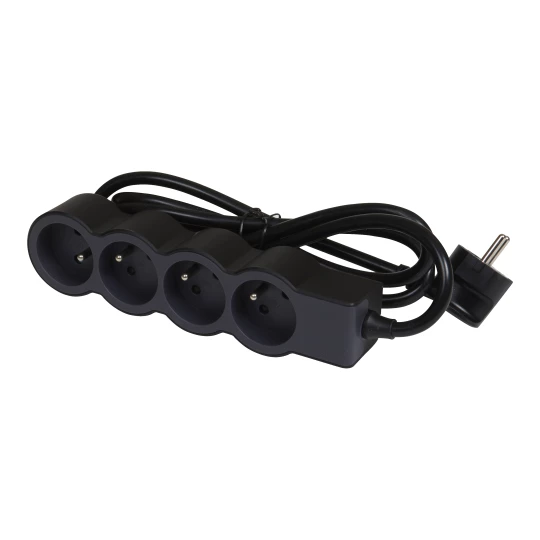 PRZEDŁUŻACZ STANDARD 4X2P+Z, Z PRZEWODEM 1.5 METRA 3X1.0 MM2 - CZARNY/GRAFITOWY