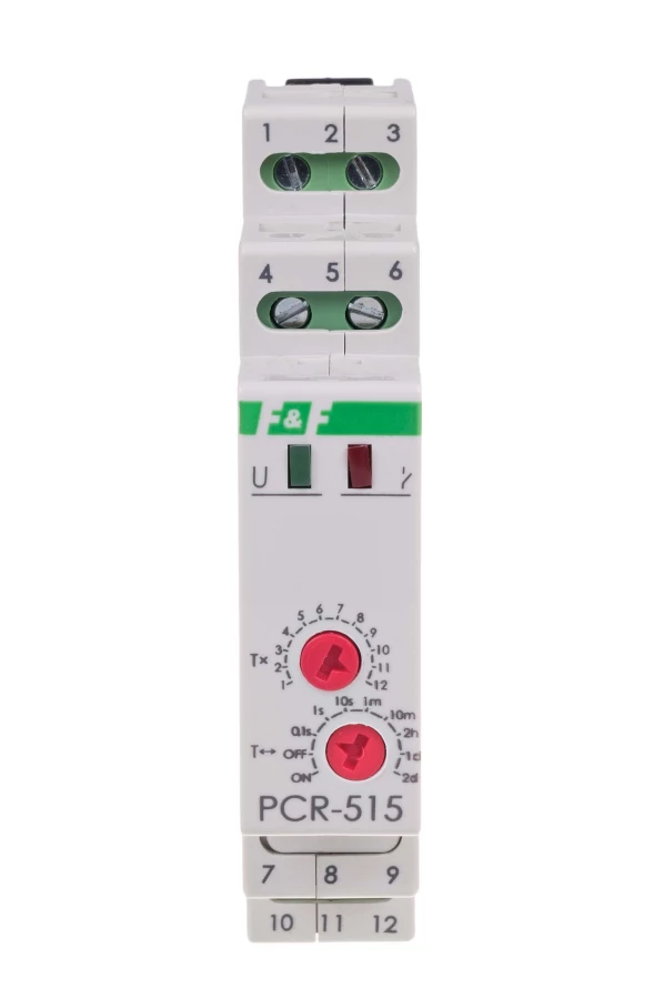 Przekaźnik czasowy PCR-515 DUO jednofunkcyjny- rewersyjny (opóźn. załączanie), styki: 1P , U=230 i 24V, I=10A, 1 moduł o numerze katalogowym PCR-515DUO w kategorii Przekaźniki czasowe, Przekaźniki. Produkt wyprodukowany przez markę F&F.