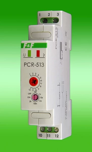 Przekaźnik czasowy PCR-513 jednofunkcyjny-rewersyjny(opóźn. załącz.), styki: 1P , U=230V, I=10A, 1 moduł o numerze katalogowym PCR-513 w kategorii Przekaźniki czasowe, Przekaźniki. Produkt wyprodukowany przez markę F&F.