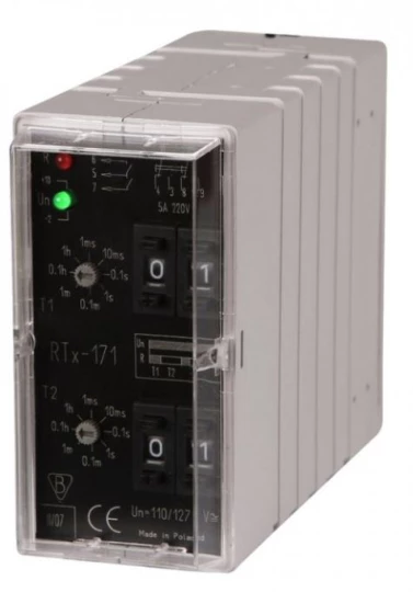 Przekaźnik czasowy 2P 5A 0,001sek-99h 220-230V AC/DC praca cykliczna,(start od załączenia na nastawiony czas) RTX-171 220/230