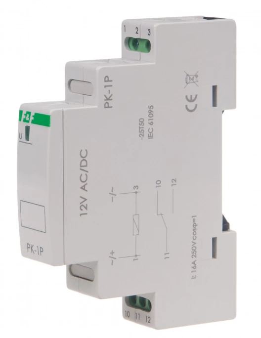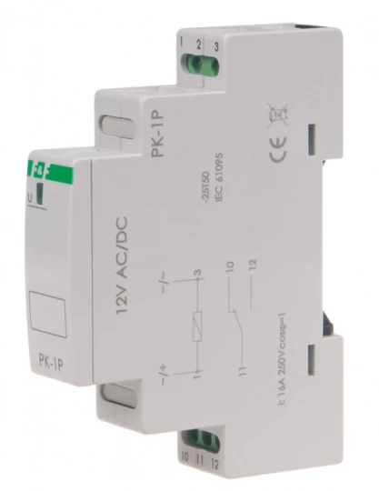 Przekaźnik elektromagnetyczny PK-1P 12V AC/DC, styk: 1P I=16A, 1 moduł o numerze katalogowym PK-1P-12V w kategorii Przekaźniki - pozostałe, Przekaźniki. Produkt wyprodukowany przez markę F&F.