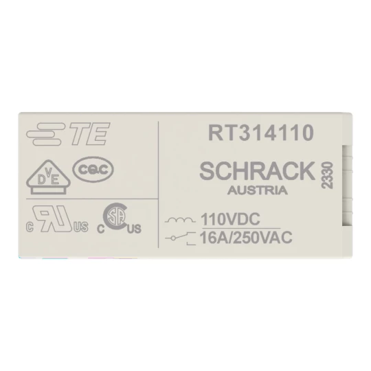 przekaźnik bazowy; znamionowe napięcie wejściowe 110 V DC; 1 zestyk przełączny; maksymalny prąd długotrwały 16 A; szerokość 13 mm; wysokość 15 mm
