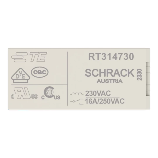 przekaźnik bazowy; znamionowe napięcie wejściowe 230 V AC; 1 zestyk przełączny; maksymalny prąd długotrwały 16 A; szerokość 13 mm; wysokość 15 mm