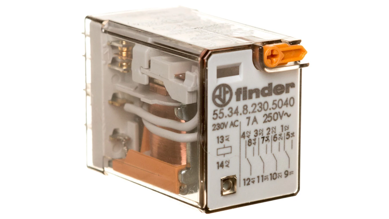 Przekaźnik przemysłowy 4P 7A 230V AC przycisk testujący mechaniczny wskaźnik zadziałania 55.34.8.230.5040