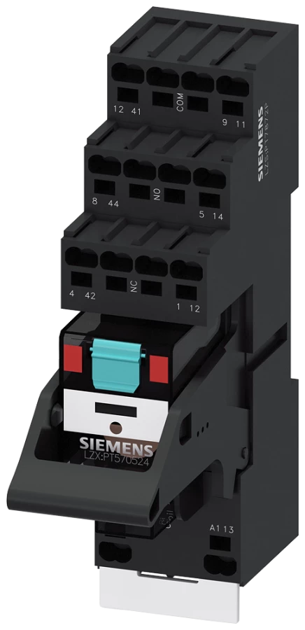 PRZEKAŹNIK WTYKOWY PT KOMPLETNY, 24V DC, STYKI 2CO, MODUŁ LED CZERWONY, PODSTAWA WTYK. Z SEPARACJĄ L