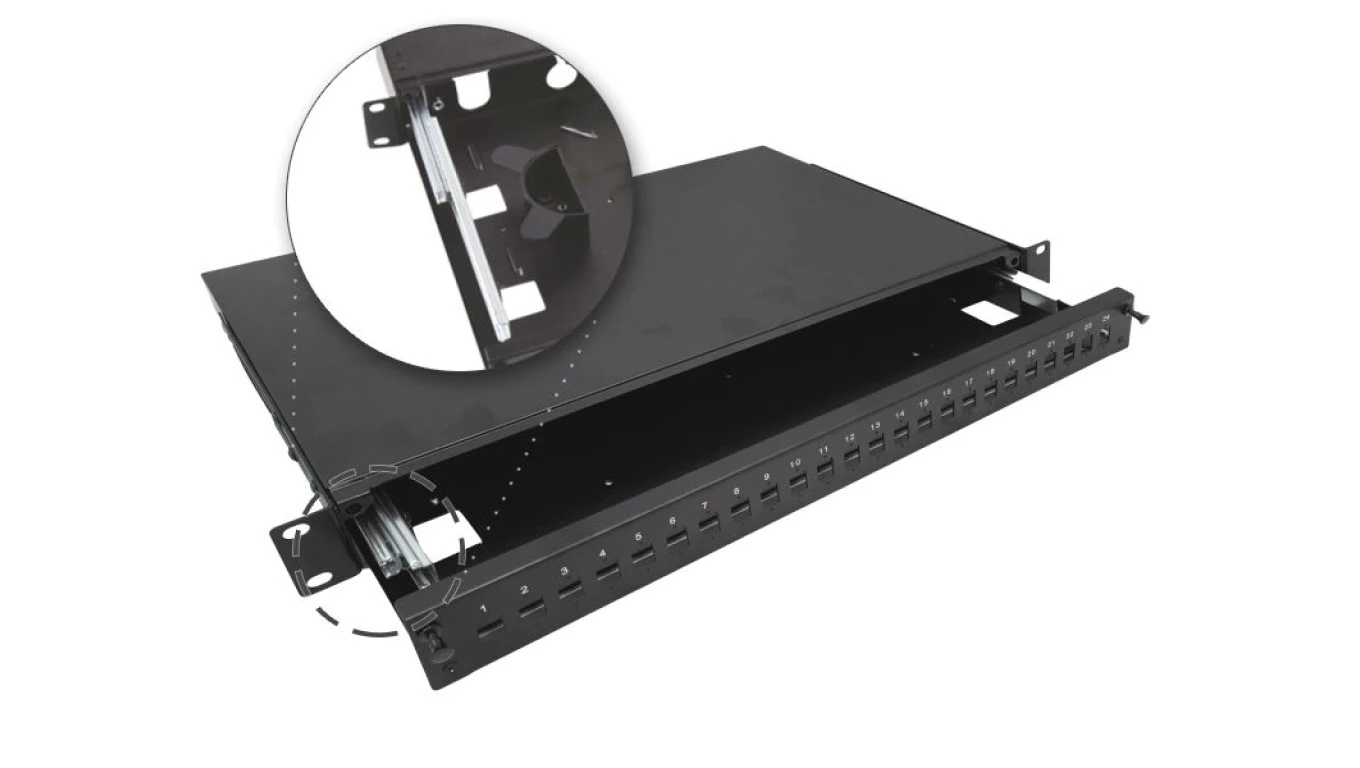 PRZEŁĄCZNICA ŚWIATŁOWODOWA TELESKOPOWA 24XSC SIMPLEX / 24XLC DUPLEX 19" 1U Z AKCESORIAMI MONTAŻOWYMI