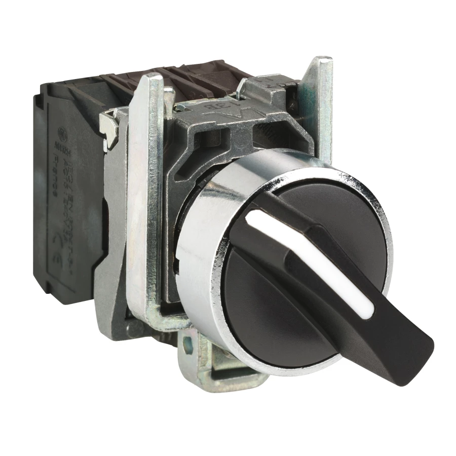 Przełącznik 3 położeniowy pokrętło 22mm czarny 2Z bez samopowrotu XB4BD33