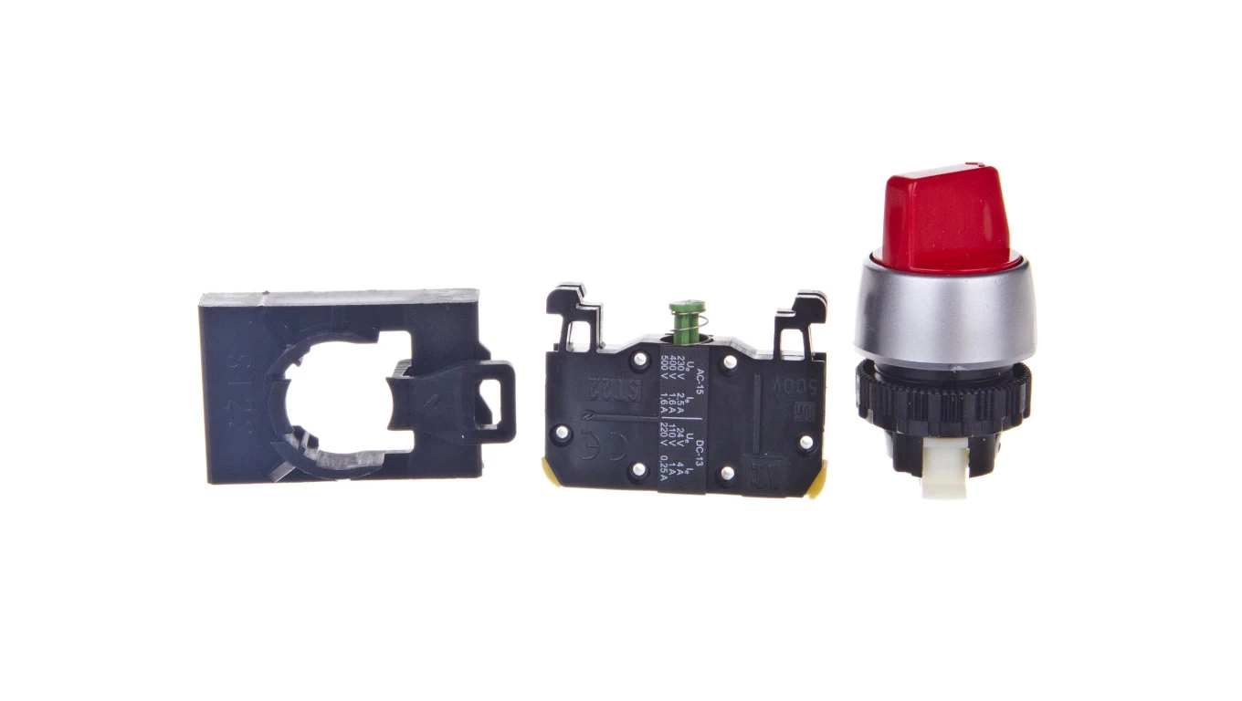 Przełącznik 2 położeniowy pokrętło 22mm czerwony 1Z bez samopowrotu ST22-P.C-10.