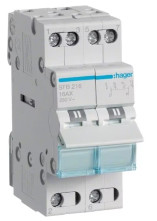 Przełącznik grupowy I-0-II, 2P 16A o numerze katalogowym SFB216 w kategorii Wyłączniki i rozłączniki modułowe, Wyłączniki, rozłączniki. Produkt wyprodukowany przez markę HAGER.