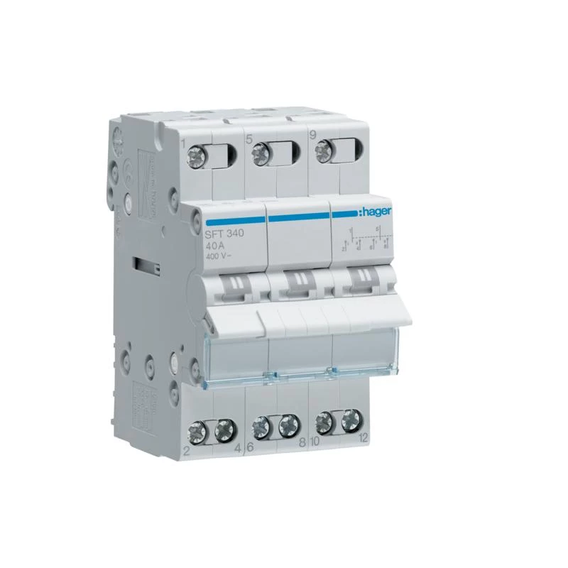 Przełącznik instalacyjny modułowy I-0-II punkt wspólny od góry 3P 40A 400VAC o numerze katalogowym SFT340 w kategorii Pozostałe, Niesklasyfikowane..
