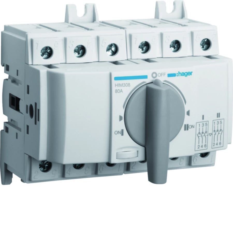 Przełącznik zasilania modułowy 3x80A o numerze katalogowym HIM308 w kategorii Pozostałe, Niesklasyfikowane..