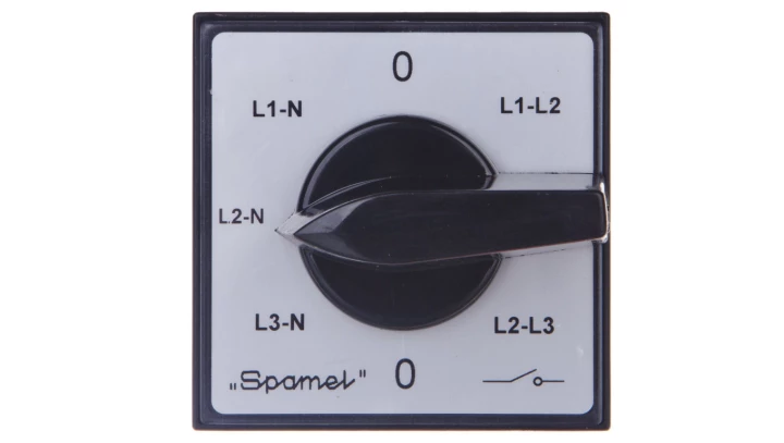 Łącznik Krzywkowy 15A, Przełącznik Pomiaru Napięcia, mocowany do pulpitu czoło szare pokrętło czarne o numerze katalogowym ŁK15-4.883\P03 w kategorii Wyłączniki i rozłączniki obrotowe, Wyłączniki, rozłączniki. Produkt wyprodukowany przez markę SPAMEL.