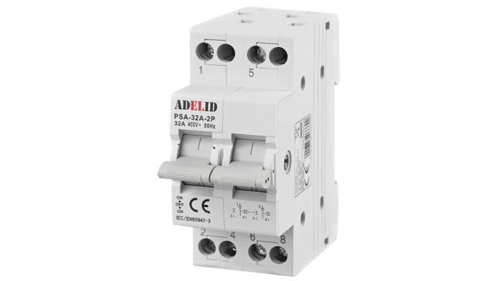 PRZEŁĄCZNIK ZASILANIA SIEĆ-AGREGAT 2P 32A 1-0-2 PSA-32A-2P