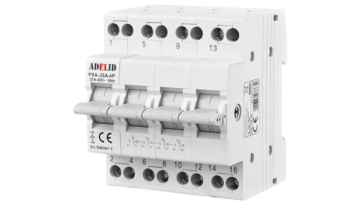 PRZEŁĄCZNIK ZASILANIA SIEĆ-AGREGAT 4P 25A 1-0-2 PSA-25A-4P